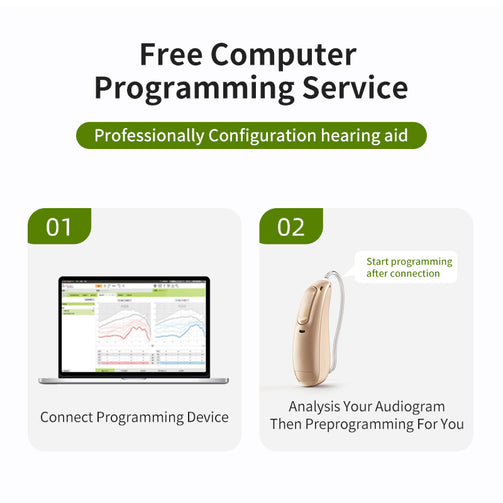 Our pressional audiologist with 10 year fitting experience to program the hearing aids at NO EXTRA CHARGE with Hearing Test/audiogram,We will preprogramming the evice for you before ship to you after recevied your audiogram.